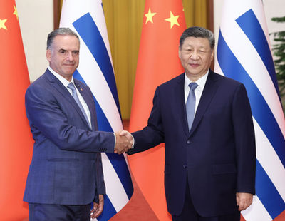 7月9日,广西南宁,市民参观在南宁国际会展中心展出的“会动的《清明上河图》展览”。此次展览以北宋画家张择端所绘《清明上河图》为蓝本,通过巨幕荧屏将原作放大数百倍,复原上千个画中人物,再现北宋时期的繁华盛景。