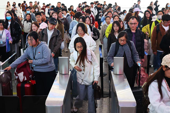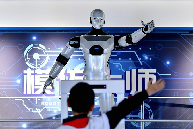 10月29日,观众在太原北齐壁画博物馆体验互动项目。
